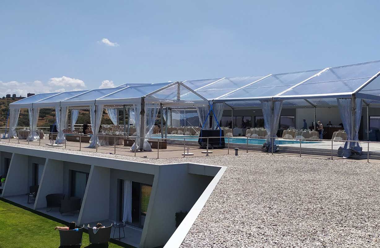 Fornecemos estruturas de tenda adaptadas a eventos de todas as dimensões. Desde coberturas simples a soluções totalmente fechadas, com ou sem climatização, garantimos conforto, segurança e estética. Ideal para eventos corporativos, casamentos ou ativações de marca.